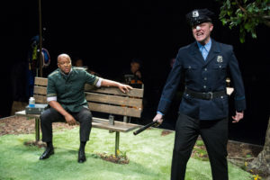 Joe (a Caucasian man) and Sean (and African-American man) have been friends for years. They grew up together in an affluent suburb, went to high school together, attended the same Ivy League school and pledged the same fraternity. As they meet for lunch in the park, Joe expresses his concern for Sean’s wellbeing after a recent brush with the police. A few days earlier Sean became a victim of a random search by police, a “stop and frisk” procedure conducted because of a “reasonable suspicion”. Sean describes his frustration at Joe for not understanding the impact the event has had on his life, and as both men struggle to find meaning in the incident, their friendship is tested as the conversation turns to aspects of race that have changed Sean’s way of looking at the world.